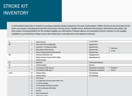 The stroke kit allows you to carry all the medication, tools and checklists you need with you so that you can treat acute stroke patients in the CT imaging room. Contact your Angels consultant today to find out how to receive your stroke kit.